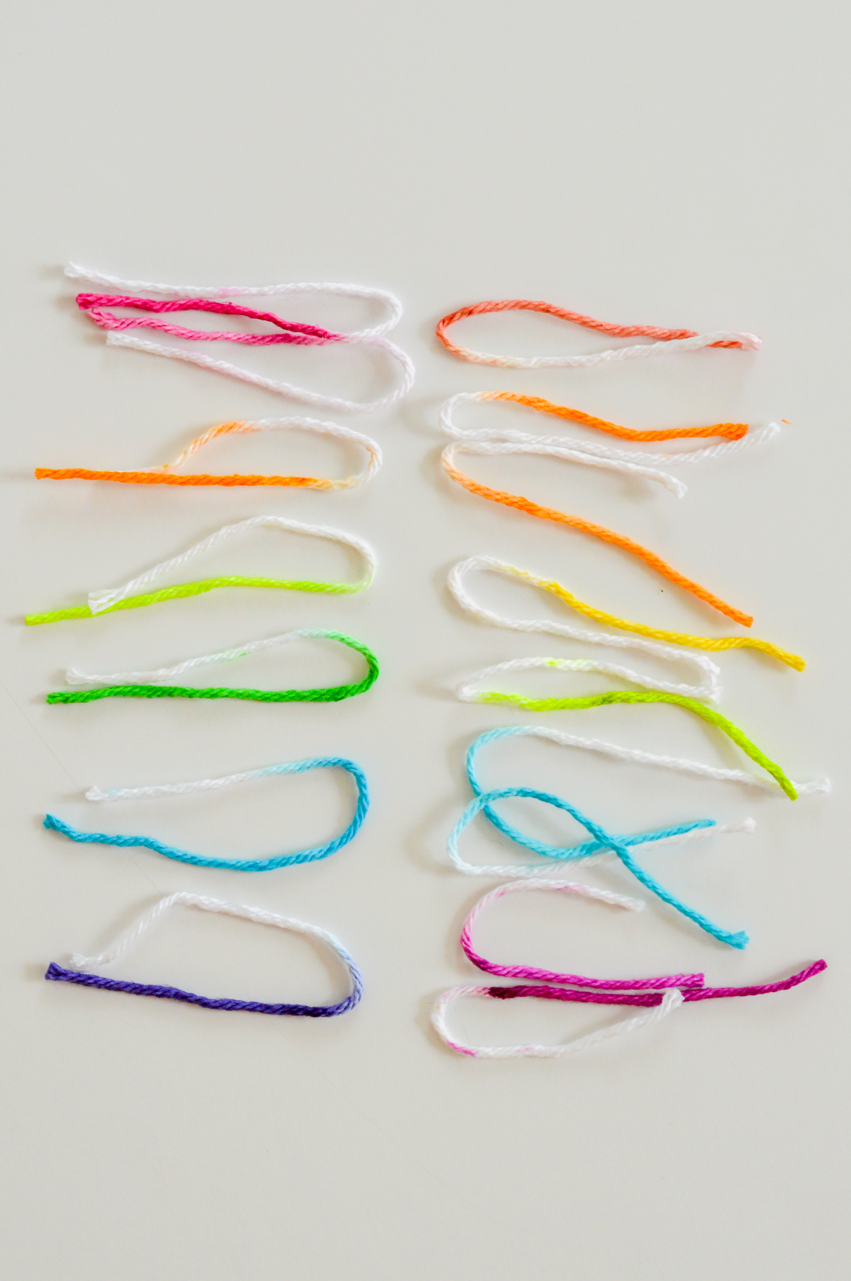 3. Cut 5 lengths of white cotton yarn: 22”, 20”, 18”, 16” and 12”.