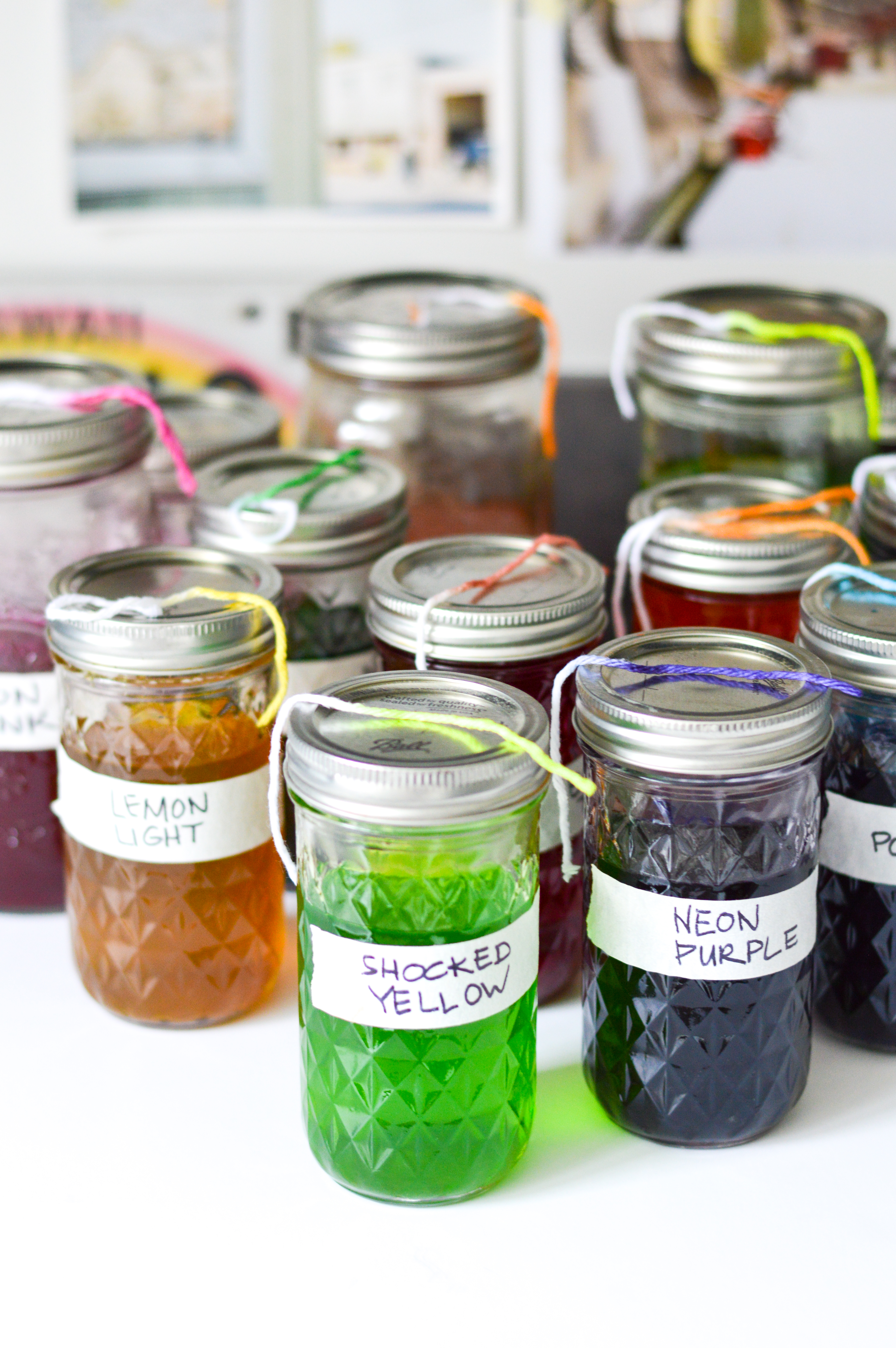 4. Label the dye containers with the color names, then mix the dyes.