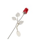 Small Silver Plated Rose With Red Bud And Oval...