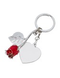 Silver Plated Rose With Pink Bud And Oval Engraving Tag
