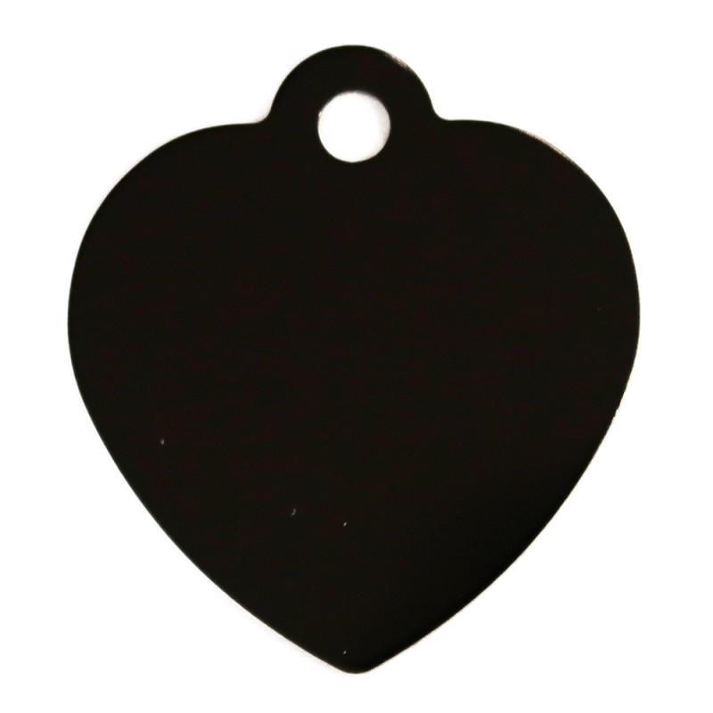 Aluminium Pet Tag Heart Shape with Hole Mount Medium 28 x 25mm Black