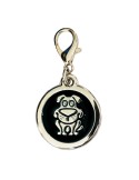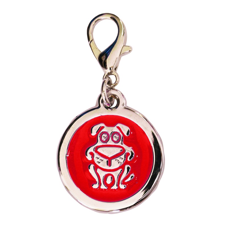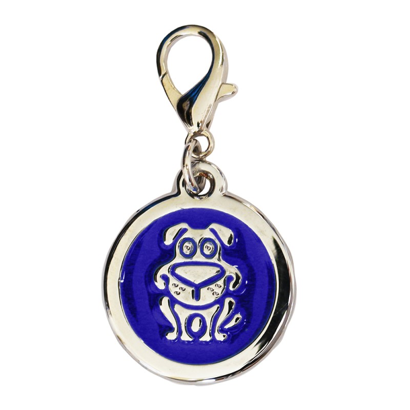 Enamelled Metal Pet Tag Heart Inlay Round 25mm Black